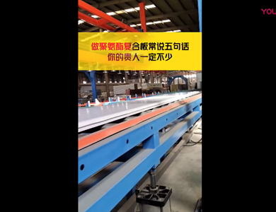 我們公司引進意大利賽浦連續(xù)生產(chǎn)線,采用了六組份在線工業(yè)微機自動操作(SIEMENS)混合澆注技術(shù)。生產(chǎn)流程分為開卷覆膜—壓制成型—鋼板預(yù)熱—高壓發(fā)泡—高溫固化—鋸切—板材冷卻—碼垛—自動打包等功能與一體的自動化生產(chǎn)線,年生產(chǎn)能力為130萬平方米。